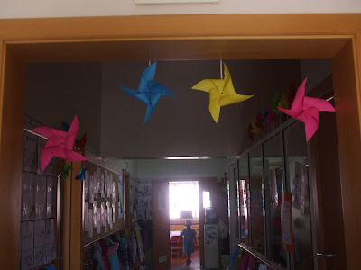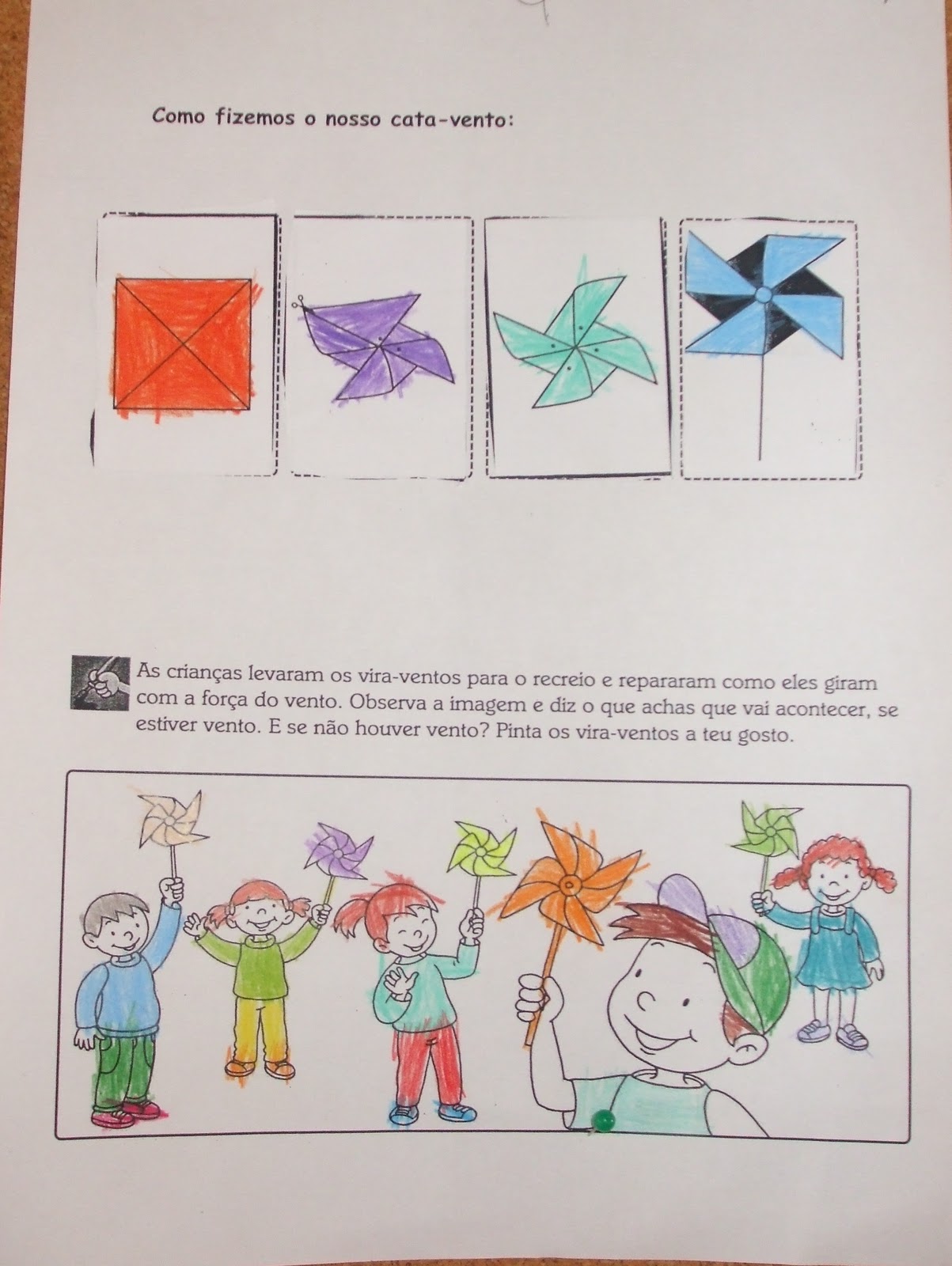 Quisemos ir apanhar o vento. Construímos cata-ventos e fomos para a rua brincar. A correr, com os moinhos erguidos, vimo-los girar. Os gritinhos e risadas foram prova de divertimento.