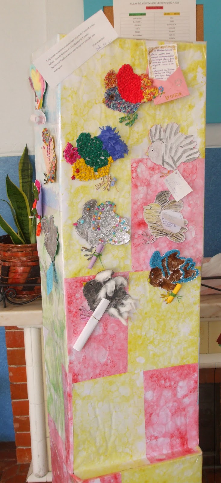 Porquê partilhar? Apenas pela ideia: criar uma maleta decorada com símbolos infantis, para provocar a curiosidade dos petizes, captar a sua atenção, diversificar formas de contar histórias ou de apresentar um tema. Por ex. "Hoje pareceu-me ouvir um ruído estranho desta minha maleta. Querem ajudar-me a descobrir o que será?" - um livro de histórias, um fantoche, um objecto, etc.