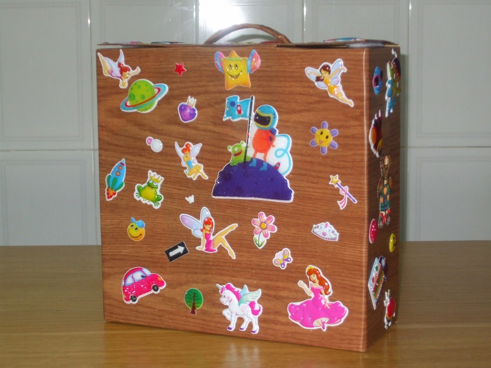 Os meus falhanços: não encontrei o papel que queria para forrar a caixa do Magalhães do meu filho e decidi usar papel imitando a madeira. Ficou a parecer uma gaveta. Queria escrever "ERA UMA VEZ" mas, mudei de ideias. Quis decorar com símbolos para os dois sexos e...para menina há muita coisa e meninos pouca. A mala ficou demasiado preenchida. Até o nome: Maleta Misteriosa?, Maleta das Surpresas.?.. Isto correu mesmo mal mas, agora vai ter de ficar assim... A utilização é que lhe vai dar alma! (espero eu!)